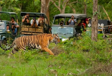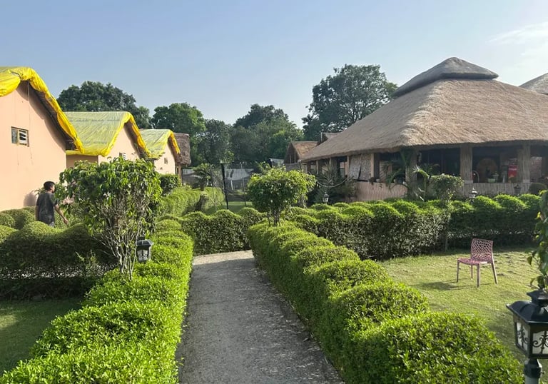 Experience serene luxury cottages and thrilling jungle safaris just steps from Jim Corbett National Park.